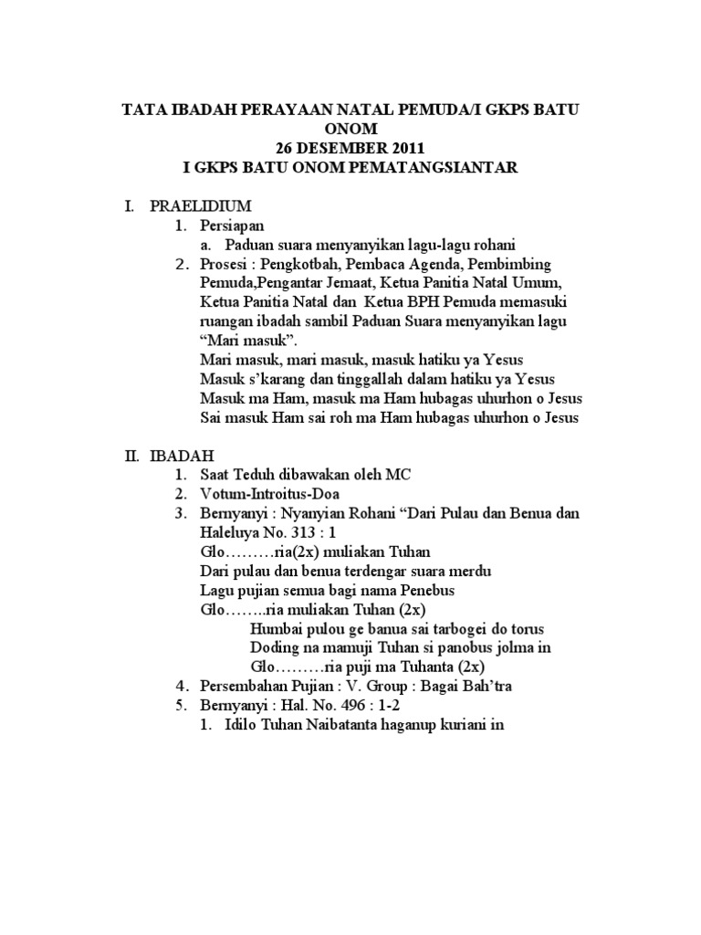 Liturgi natal sekolah minggu/ pemuda. 67%(9)67% found this document useful (9 votes). Liturgi natal i, 25 desember 2020. Liturgi adalah bahagian dari ibadah, sedangkan ibadah adalah bahagian dari hidup, jadi hidup dan liturgi harus nyata di dalam ibadah. Sudahkah toppers mendekor rumah untuk membuat suasana perayaan natal jadi lebih meriah?